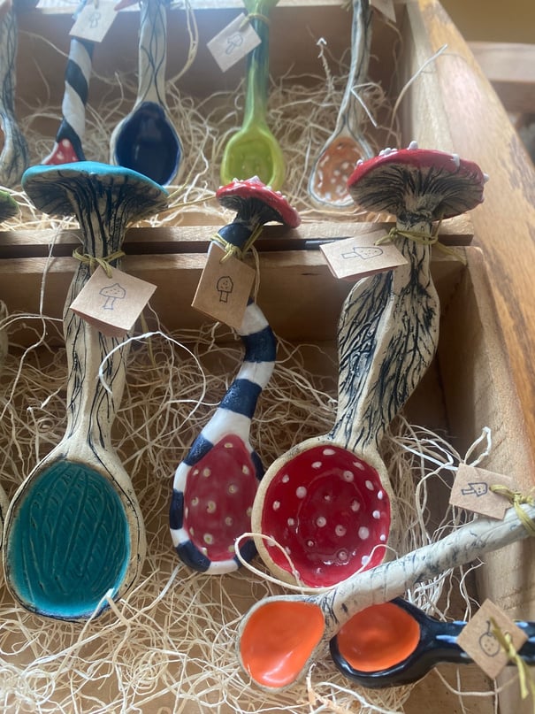 Karla has devoted her craft to creating botanical and mushroom-related pottery for everyone who delights in and is fascinated by our natural world. She hand-builds each piece with a deep understanding of the plants and fungi world and the intricate relationship between color, form, and function. Her pottery, adorned with herbal motifs, earthy hues, and whimsical touches, serves as functional and sculptural art that seamlessly blends into the sanctuary of all who love the natural world. Her passion for the healing properties of nature is felt in every carefully crafted piece. Her pots are cherished and useful pieces within the community of herbalists and others who appreciate the fusion of art and nature in their daily routines and rituals.